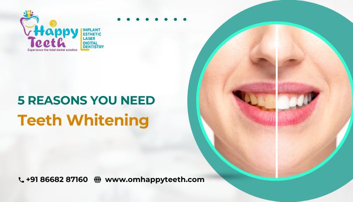 At Om Happy Teeth Dental Clinic, we believe everyone deserves to smile with pride. Thanks to modern whitening techniques, achieving those radiant teeth is no longer out of reach—and it’s more affordable than ever. If you’re curious about the teeth whitening cost in Pimple Saudagar, you’ll be pleasantly surprised by how budget-friendly and effective professional treatments can be. If you’ve been contemplating whether to get your teeth professionally whitened, here are five compelling reasons that might just help you decide.